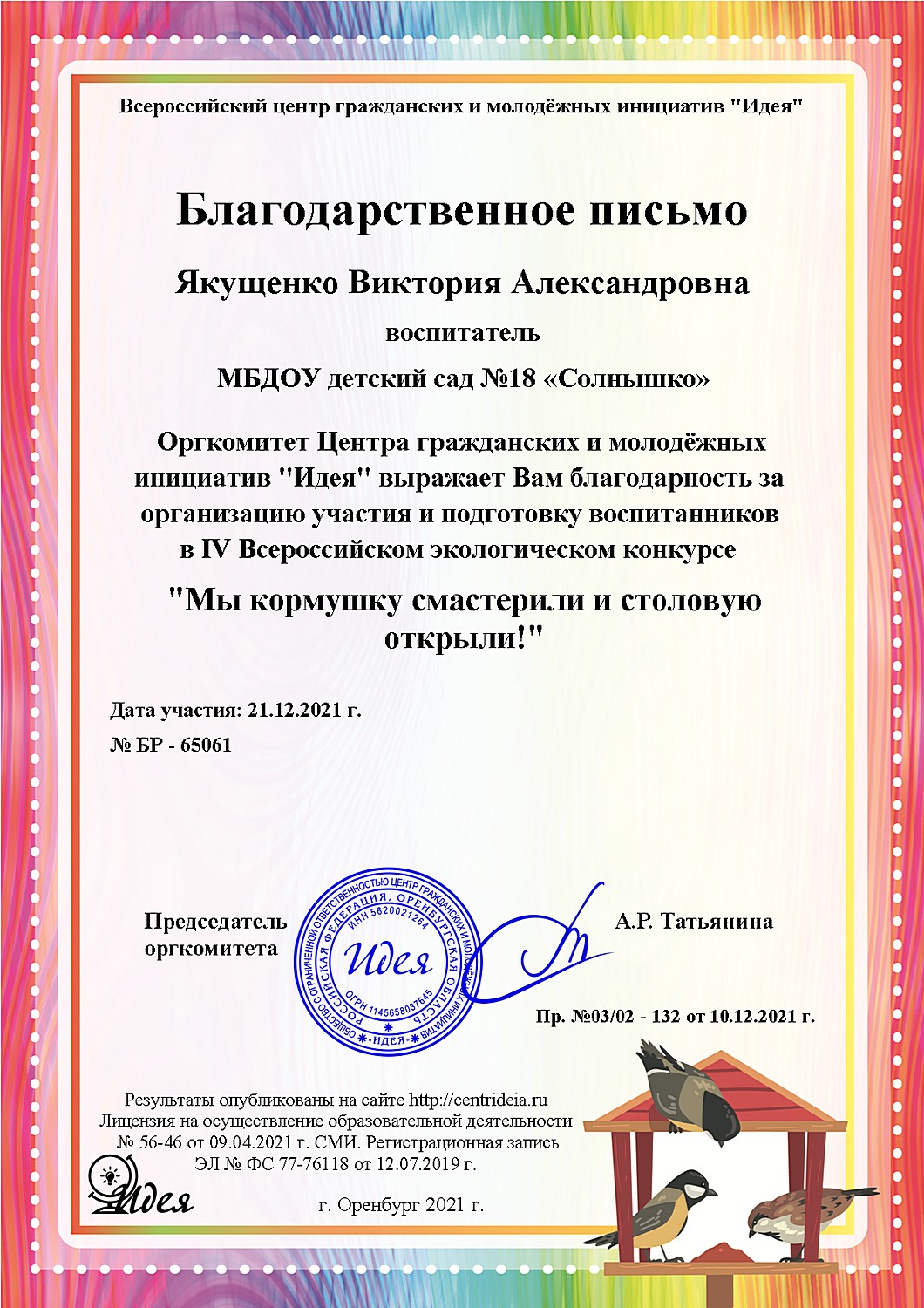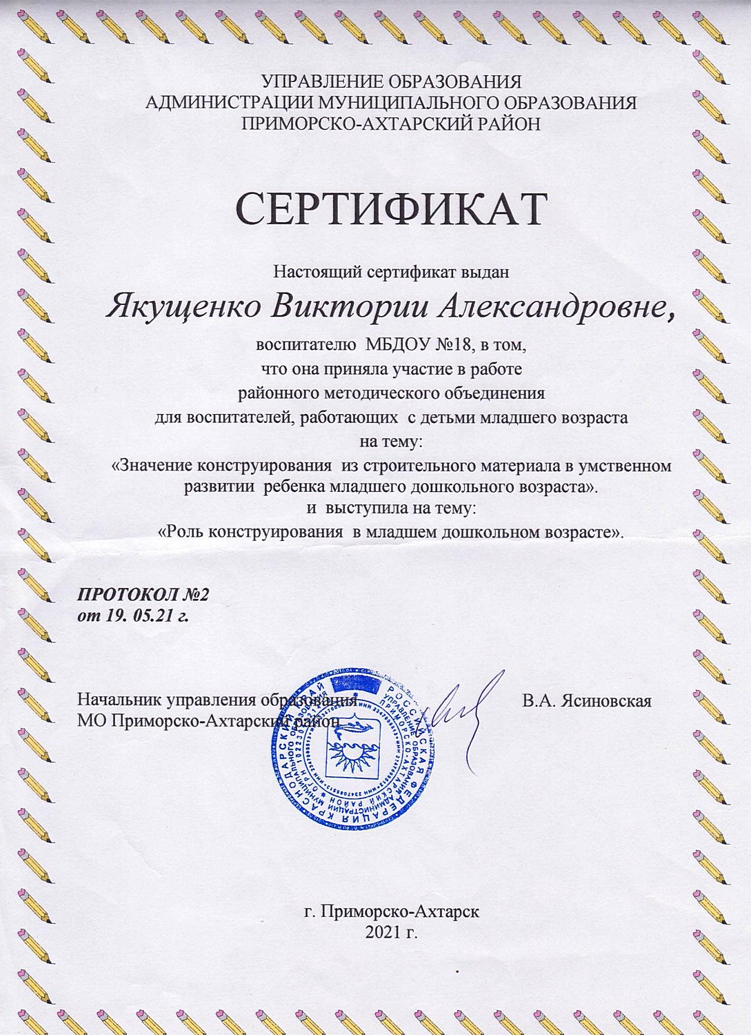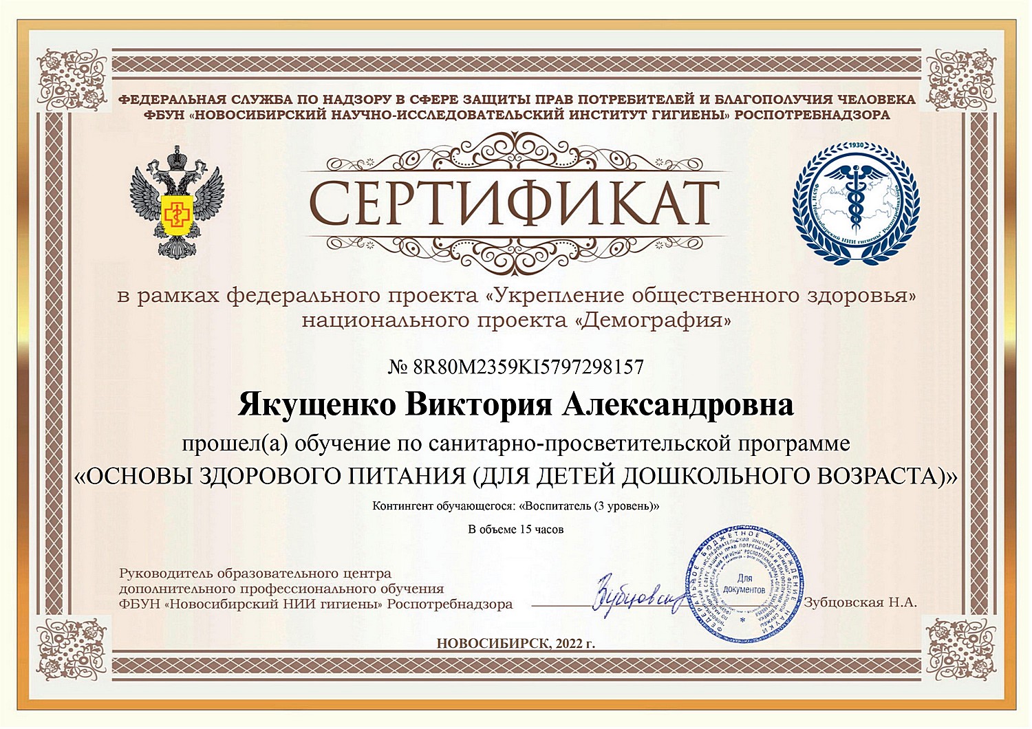 Фамилия, имя, отчество: Якущенко Виктория Александровна
